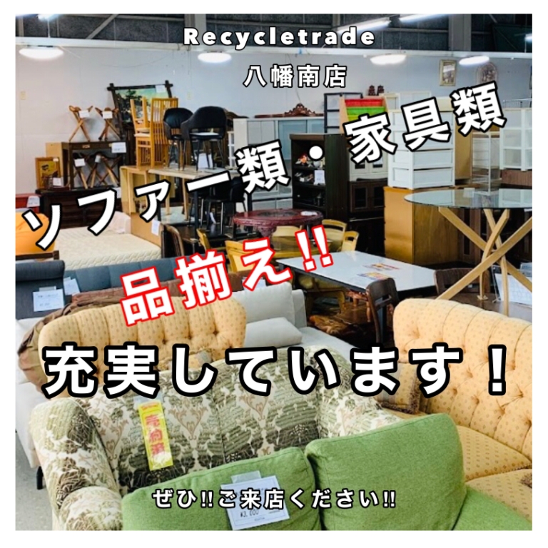 ソファー 家具 品揃え 充実しております 北九州 八幡西区 八幡南店 🛋️ソファーや家具をお探しの方はいませんか?🛋️ リサイクルトレード八幡南店では 🛋️ソファーや家具の品揃え!充実しております‼︎🛋️ 一点物が多いため ✨ぜひ‼︎お早目にお越しくださいませ‼︎✨ 他にも、お得な🉐‼️ 家電・生活雑貨・お酒類 など 色々ございますので‼️ みなさまのご来店を心よりお待ちしております‼︎ Tweet